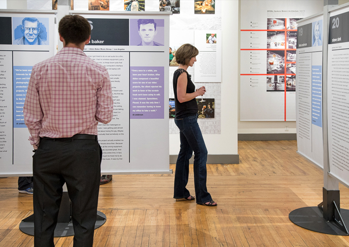 Among those represented in the exhibit are artists, photographers, illustrators, programmers, videographers, media buyers, printers, animators, fabricators, composers—even a cartoonist. While the majority of them are from Spokane, some hail from as far away as Los Angeles and Minneapolis.