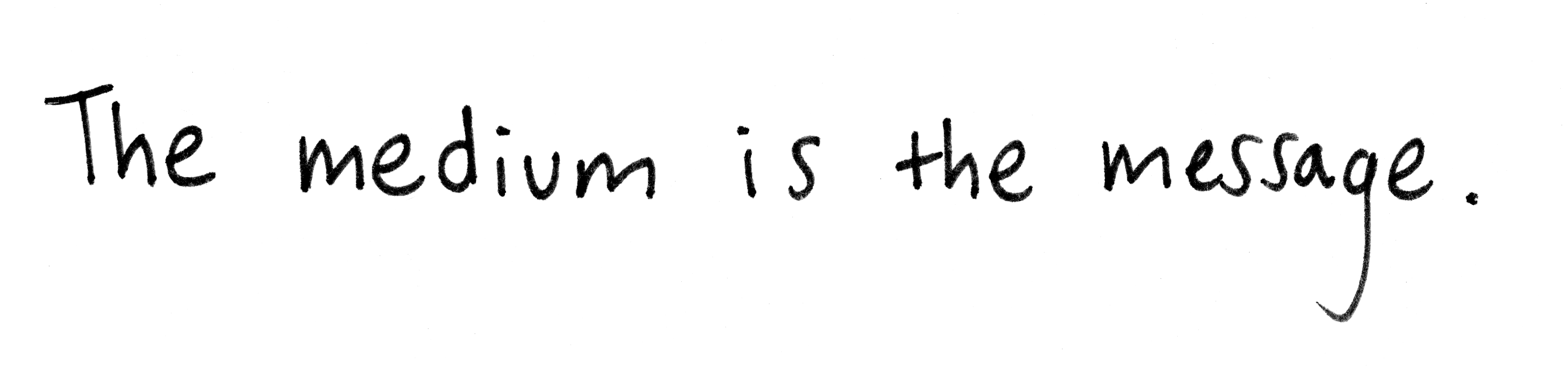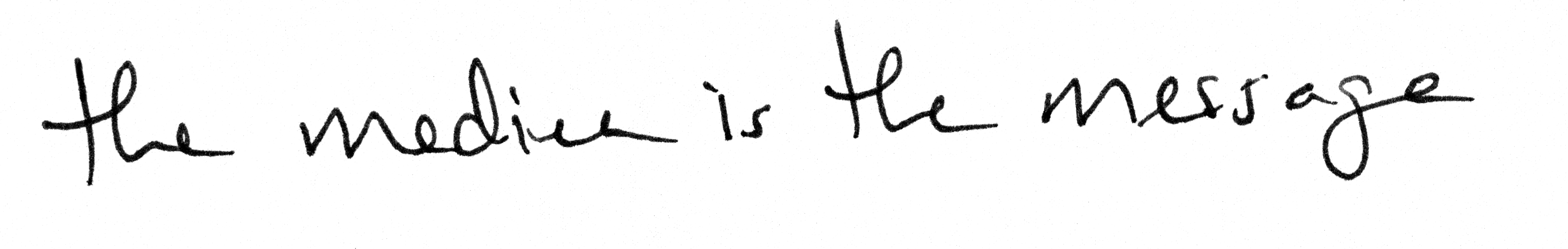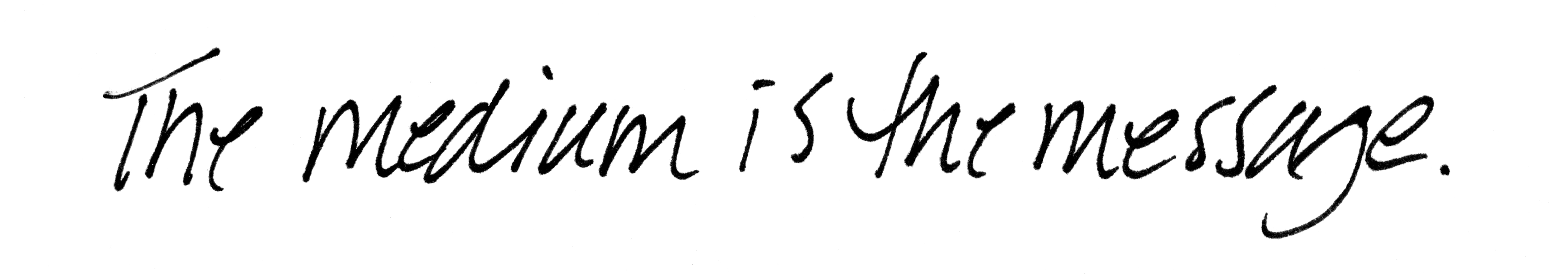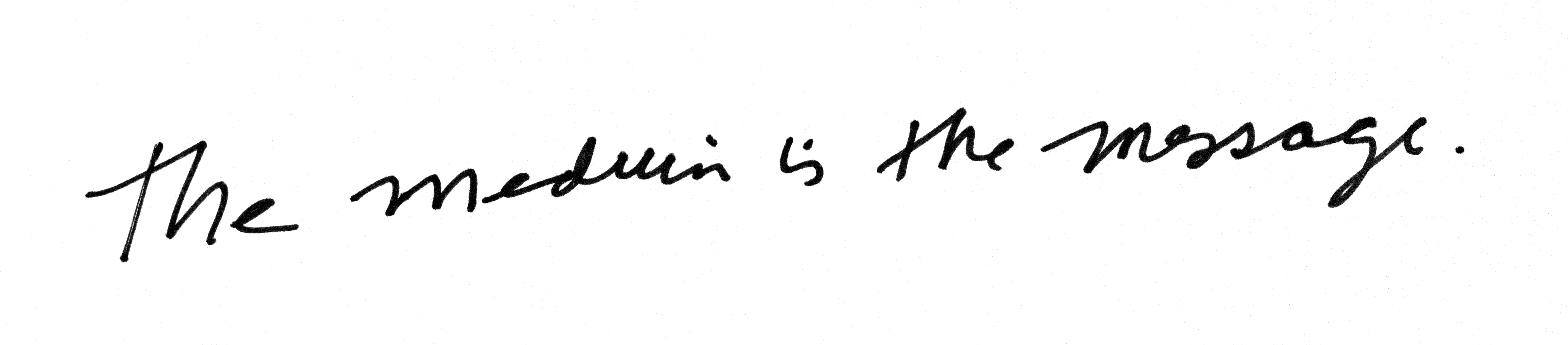 The line is this quote by philosopher and media theorist Marshall McLuhan: The medium is the message.