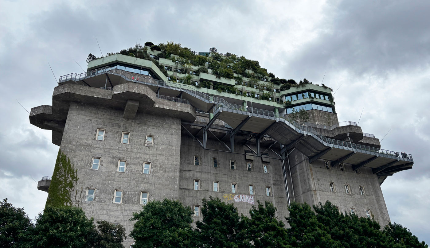 Over the decades it housed residential and event spaces, restaurants, and media organizations. Gyms for rock climbing and UFC training were added more recently, along with a nightclub that is a staple of the local scene. And in 2024, the bunker’s most transformative project opened on top – a 5-story hotel with a green facade and sprawling rooftop garden framed by unreal city views (REVERB’s first guest was Karl-Heinz Pischke, who took shelter in the bunker as a 12-year-old while bombs dropped on Hamburg in 1945).