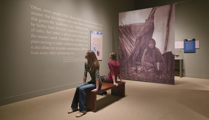 Bringing to light 100 American Indian baskets from a collection of nearly 3,000, Fibers of Life demonstrated both the beauty and the utilitarian aspects of the weaver’s art. The space was designed to promote contemplation and reflection.