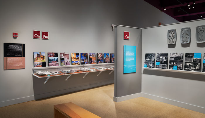 helveticka provided full curation services – including research, design, writing, fabrication, and installation oversight – for SPOMa: Spokane Modern Architecture, 1948–73.